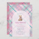 Convite Chá de fraldas de Garota do Urso Rosa e Lavanda