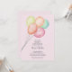 Balões de cores aquáticas multicolores num fundo cor-de-rosa pálido, design perfeito para convites para chás de meninas. IMPRESSO e/ou DESCARREGAMENTO INSTANTÂNEO. CORRESPONDENTE a itens na nossa coleção.