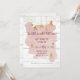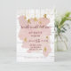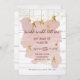 "Twinkle Little Star Dourada Wood Girl Convite Chá de fraldas." Um fundo de lavagem a aquarela moderno em pínus pastel empoeirados sobre madeira branca de algodão, o fundo do escudo é emparelhado com estrelas de brilho dourado e texto brilhante. O verso tem um padrão de repetição de meia gota de uma estrela ouro solteiro. Arte de uma artista e designer internacionalmente licenciada, Audrey Jeanne Roberts, copyright.