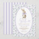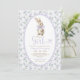 Bem-vindos a sua pequena alegria com este convite de chá de fraldas para o coelhinho do querido, perfeito para celebrar uma menina! Apresentando um belo coelho desenhado à mão com um arco de lavanda coquete, florais púrpuros de pasta macia e um roteiro elegante que diz "É uma Menina", este convite traz um toque de floresta antigo para o seu evento especial.