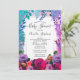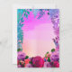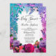 Flores brilhantes, arrojadas e coloridas e samambaias tropicais, design de Chá de fraldas floral de vassoura com quadro de sotaque em tom gradiente cor-de-rosa a roxo.