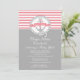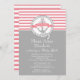 Comece seu barco à beira-mar náutico de verão chá de fraldas com nosso convite para chá de fraldas de navios contemporâneos. Nossas naves na moda e populares ahoy é um convite para chás de meninas que apresenta uma âncora de cinza com um banner moderno em um círculo de corda, colocado em uma faixa colorida rosa e branca e fundo de cinza. Perfeito para chá de fraldas temático de veleiro. Sacudir o convite para uma faixa rosa e branca correspondente de volta com uma âncora. Disponível em nosso compro em outras opções de cores