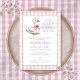 Este charmoso convite para chás de fraldas apresenta um ganso bonito e um fundo cor-de-rosa de gingham. Projetado por Thisnotme©