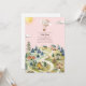 Chá de fraldas com ilustração aquosa da cidade no outono com nuvens e sol. Balão de ar quente cor-de-rosa com faixa "é uma menina". O fundo é rosa claro.