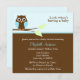 Convites personalizados e simples são perfeitos para chás de fraldas, festas de aniversário de crianças, novos anúncios de nascimento de bebês ou adoção e muito mais! Eles apresentam uma bela ilustração vetorial, uma coruja fofinha empoleirada num ramo de árvore. Disponível em azul, cor-de-rosa ou verde com cores acentos castanhas. Cores personalizadas disponíveis por solicitação.