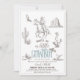 Este retrô e chic "um pequeno cowboy está a caminho", chá de fraldas de menino, mostra um cowboy em um cavalo, águia, cacto, chapéu de cowboy e crânio. O verso apresenta um fundo azul bebê com padrões de cacto. Personalize para suas necessidades. Você pode encontrar produtos correspondentes na minha loja.