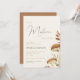 Celebre o seu pequeno convite para chá de fraldas com um garoto de madeira cogumelo, com cogumelos florestais pintados à mão, verde e detalhes lúdicos de floresta. Perfeito para temas rústicos, florestais ou inspirados na natureza, este convite para o chá de fraldas da floresta adiciona um toque encantador à sua celebração. Disponível como um cartão impresso ou download digital para atender às suas necessidades, este convite para chás de fraldas de floresta é ideal para encontros aconchegantes, festas ao ar livre ou chás de hospedagem rústicos.