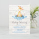 Chá de fraldas Rustic Boy Giraffe Convidando Azul e Cinza. Chá de fraldas De Meninos Convidam. Flor Floral de Água e Sair. Fundo Da Madeira Rústica.