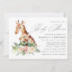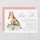 Convite para chás de fraldas tropicais com uma mãe aquosa e girafa bebê com flores de marfim e de hibisco rosa com folhas verdes e folhagem. "Chá de fraldas" é exibido em um script de caligrafia moderno com os detalhes do chá de fraldas mostrados abaixo. O chá de fraldas de girafa convida para reverter para um fundo rosa sólido com espaço para texto e/ou imagens.