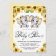 Convite Chá de fraldas de girassol de elefante gêmeo