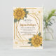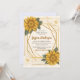 Convite Chá de fraldas de girassol legante Quadro Dourado