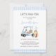 Prepare-se para comemorar em estilo com este Chá de fraldas de Golfe! Este convite é perfeito para amantes de golfe e apresenta um charmoso carrinho de golfe, um saco de paus e um design de gingham na moda azul. Ideal para o chá de fraldas de um menino, este convite é um buraco-em-um para uma celebração divertida e única! BBS402
