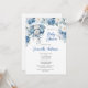 Um belo floral azul e branco de aquarela com um convite para Chá de fraldas de guarda-chuva.