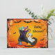 Convites para Bebê Halloween. O Chá de fraldas de Halloween, personalizado em forma de boneca e na moda, convida as meninas com uma legal, bonito cor de laranja e tinta preta, a ilustrar o fundo vetorial com morcegos, e uma linda menina dormindo em uma bota de bruxa branca negra e gótica cheia de doce de Halloween. Estes convites elegantes são decorados de ambos os lados. NOTE: Todos os produtos do Zazzle têm imagens impressas em formato plano. O texto, a fonte e a cor da fonte são todos personalizáveis/personalizáveis, exceto o texto do Chá de fraldas na frente dos convites, que é fixo. Diversão original da arte ©delightful-doodles.com e The evectorart.com. Se precisar de ajuda para personalizar seu produto, entre em contato comigo pela loja e terei todo o prazer em ajudar.