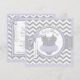 Ponta de jumper impressão de bolinhas de doce na linha de clothesline e arco 3D e fita para uma placa de convite para chá de fraldas de menina. As cores são lavandas e cinza.