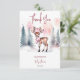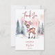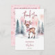 Bebê é frio fora do inverno cartões de agradecimentos com tema de inverno chá de fraldas editável modelo digital download, veado-bebê com cor d'água e um cachecol cor-de-rosa e um chapéu de inverno, cartões de agradecimentos de pinheiros com neve para o chá de fraldas das meninas de inverno