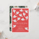 Este elegante convite para chás de fraldas apresenta um fundo vermelho com pombas brancas carregando um galho de oliveira. O verso apresenta um fundo verde escuro com padrões florais. Personalize-o para as suas necessidades. Você pode encontrar produtos correspondentes na minha loja.