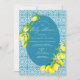 Caligrafia russa Boho Script Mediterrâneo Azulejos Azuis Limão Citrus Verão Gênero Convite para Chás de fraldas Neutros