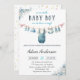 Convite Chá de fraldas de Linha de Fechamento Blue Baby Bo