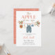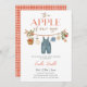 Celebre seu docinho com nossa Apple do nosso Convite para Chás de fraldas de Olhos! Esta design com uma cor d'água branca, enfeitada com roupas de bebê, verde-peluda e maçãs vermelhas suculentas — perfeita para uma celebração de outono ou chá temático rústico.