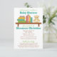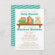 Este convite para o chá de fraldas apresenta uma estante bonita com uma paleta colorida divertida e um ursinho de pelúcia. É perfeito para um chá de fraldas temático. Inclui texto para uma solicitação de Livros para Bebê.