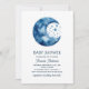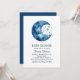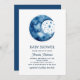 Lua azul e estrelas de cor branca e branca Convite para chá de fraldas celeste espacial para bebê rapaz.