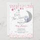 Convite Chá de fraldas de Lua de Coruja Rosa-Prateada
