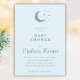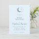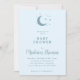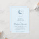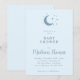 Convite para Chá de fraldas Lua e Estrelas apresentando mínimo de lua e design de estrelas em azul suave com script simples