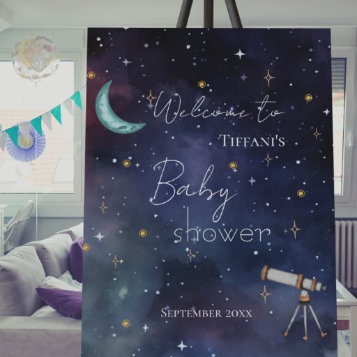 Convite Chá de fraldas de Lua e Estrelas Celestiais Modern