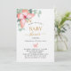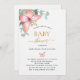 Um fundo branco chic. Decorados com ouro rosa e borboleta cor-de-rosa esbranquiçada, folhas verdes de eucalipto de cor aquosa, galhos, verde-verde e um cinturão de ouro falso. Personalize e adicione o nome da mãe a ser e os detalhes da festa. Letras pretas e ouros coloridas.