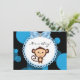 Adoráveis convites para chás de bebês de macaco preto e azul. Este belo convite para chás de fraldas de macacos preto e azul é facilmente personalizado para o seu evento, adicionando detalhes do seu evento, estilo de fonte, tamanho de fonte e cor e texto.