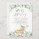 Celebrar com este convite de chá de fraldas mimetizado. Apresenta ilustrações de aquarela de um veado bebê, borboleta, flores e verde. Este convite para chás de fraldas é perfeito para um chá de fraldas Boy. Personalize a parte de trás do convite alterando o plano de fundo ou adicionando detalhes adicionais. Outros eventos e itens correspondentes estão disponíveis.