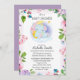 Elefante Púrpura Rosa, Floral, Chá de fraldas de Mãe Convite para Meninas. Esta adorável design de aquarela tem uma mãe e um bebê sentados numa lua crescente. Claro que agradeço a sua mãe.