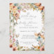 FAIRIGES ENCANTADAS verticais 5x7 CAIR NO CHÁ DE FRALDAS FLORAL DO OUTUMN - Versão clara e clara de fundo branco | Flores coloridas de fadas de jardim numa fronteira de cor branca e flor pura de âmbar, pêssego e azul empoeirado com folhagem de folha de outono. No verso está a mesma imagem com uma fada adorável Um conjunto completo de produtos está disponível para compra na coleção. MSP0114