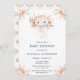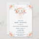 Um belo convite ao chá de fraldas apresenta uma medusa com arranjos florais cor-de-rosa coral. Perfeito para um chá de fraldas. As palavras podem ser alteradas para se adequarem aos seus próprios detalhes ou requisitos