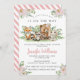Um convite para chá de uma menina da Floresta Florestal de cor rosa-d'água. Um pouco selvagem está a caminho do chá de fraldas.
