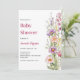 Convite Chá de fraldas de menina púrpura, cor-de-rosa, flo