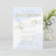 Convite para brunch chá de fraldas com nuvens de cor-d-água azul-bebê e texto elegante de ouro na frente e fundo impressão de cintilação de ouro bonito no verso. Estes elegantes convites para chuveiros de bebês azuis e dourados são facilmente personalizados com os detalhes do seu evento.