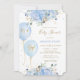 Convite Chá de fraldas de Menino Azul Floral Moderno