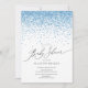 Convite moderno de chá de fraldas com brilho azul com fonte de caligrafia contemporânea e um brilho de coordenação para um toque especial extra.