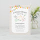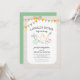 Este convite temático para o chá de fraldas do Mercado Agricultores é perfeito para um evento neutro em termos de gênero. O design apresenta ilustrações simples de uma variedade de vegetais emparelhados com um lençol de água e é acentuado com faixas coloridas de pennant.