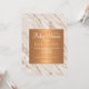 Chá de fraldas de convite metálico elegante com estilo glamouroso, chic elegante e monograma, com um quadro de gradiente de cobre brilhante de ouro quadrado num bronzeado bege e e fundo de mármore de cinza esticado. Preencha suas informações nos pontos, Você pode optar por personalizá-las mudando ainda mais as fontes e as cores das letras. — O convite é adequado para elegantes primavera de inverno clássicas, festas de verão ou outono/outono de bebês ou bebês. — Se precisar de assistência, por favor, entre em contato comigo!