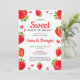 Você está procurando por convites para o chá de bebê com morango? Confira o "Berry Sweet está a caminho" Convite ao Chá de fraldas de Morango. Apresenta adoráveis aquarelas na frente e um padrão de morango com cor d'água cardíaca na parte de trás. Você pode personalizá-lo facilmente. Este é o tema perfeito para qualquer festa de chá de fraldas de morango.