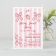 Convite para Chá de fraldas de Morango Vermelho Desenhado Mão Vermelho Convite para chá de fraldas de morango quirky doce, com um solteiro de morango e um ramo de morango, dois arcos e um padrão listrado branco e vívido, cor-de-rosa. O verso do convite também apresenta o padrão riscado e ilustrações desenhadas à mão.