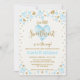 Convite para Chá de fraldas de Tema de namorados. Dourado Azul, Bebê, Sprinkle, Convide. Querida Festa Convidada. Confetti de Coração Glitter.