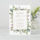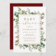 Este convite para chá de fraldas apresenta cor d'água pintada de eucalipto, folhas verdes, bagas vermelhas, ramos de pínus e uma falso estrutura retangular de ouro com caligrafia por na moda. Para personalização mais avançada deste design, clique no link "Personalizar mais". Itens correspondentes também estão disponíveis.
