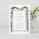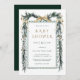 Este elegante convite para chás de fraldas apresenta uma aquarela de pinheiros de Natal decorada com fitas de ouro, bagas holly, verde botânico e caligrafia na moda. Para personalização mais avançada deste design, clique no link "Botão da ferramenta Design".