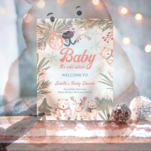 Querida, está frio lá fora! Entra numa terra maravilhosa de inverno com o nosso convite para chás de fraldas com ursos polares brincalhões e renas brancas e raposa fofa. Contra um pano de fundo azul festivo adornado com flocos de neve e padrões gelados, estes adoráveis animais árticos põem o palco para uma celebração mágica. Os ramos de pínus florais e o loiro juntam uma camada extra de charme, criando uma atmosfera caprichosa e festiva. A paleta de cores, uma mistura de blues macios e brancos gelados, evoca a beleza serena de uma paisagem nevada. A fonte branca, destacada com flocos de neve e estrelas, adiciona um toque de magia aos seus detalhes personalizáveis de eventos. Ideal para chás de fraldas de inverno e veraneio, esse convite encantador captura o espírito da época com seu delicioso design. Celebre a sua chegada ao estilo com este convite neutro e encantador, que promete uma celebração cheia de calor e alegria.