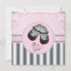 Adoráveis calçados pretos de bebês elegantes, cor-de-rosa e cinzas prateadas, diamantes e modelo de chá de fraldas de pérolas. Este doce convite de chá de fraldas feminino é facilmente personalizado para o seu evento.
