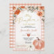 EDITABLE Orange Gingham Floral Pumpkin Outono Convite Elegante Terracotta Nossa Pequena Pumpkin Está No Caminho Convite Chá de fraldas Boho Arch Laranja Pumpkin Bebê Pumpkin Chamada